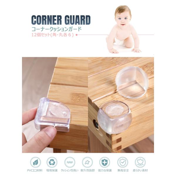 コーナーガード コーナー クッションカード 赤ちゃん 子供 ケガ防止 安心クッションコーナー強力両面テープ付き 12個セット 角型6個 丸型6個