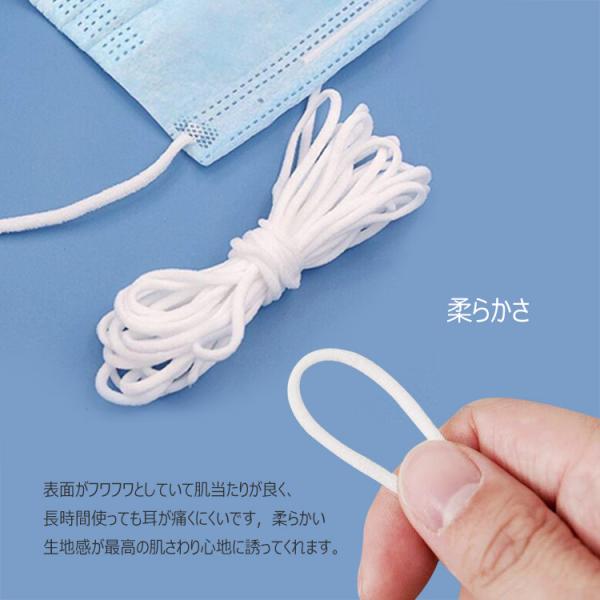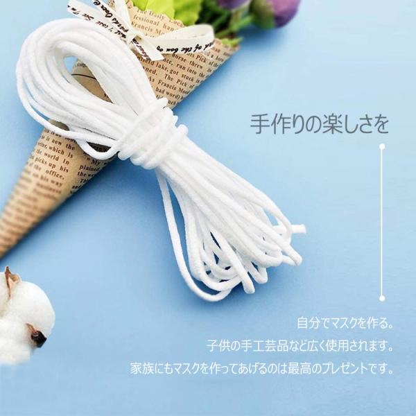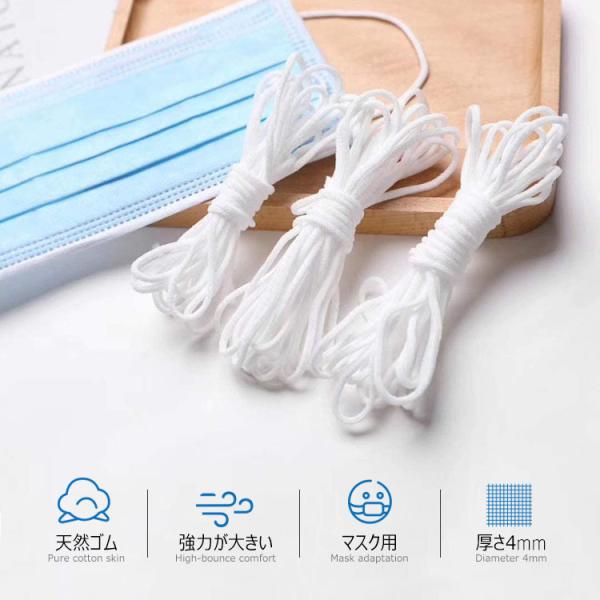 マスク用 ゴムハンドメイドホワイト マスクゴム白い丸 ゴムタイプ 柔らかい 弾性線 ゴムひも 裁縫 安全安心な業務用 痛くなりにくい(白,10m)