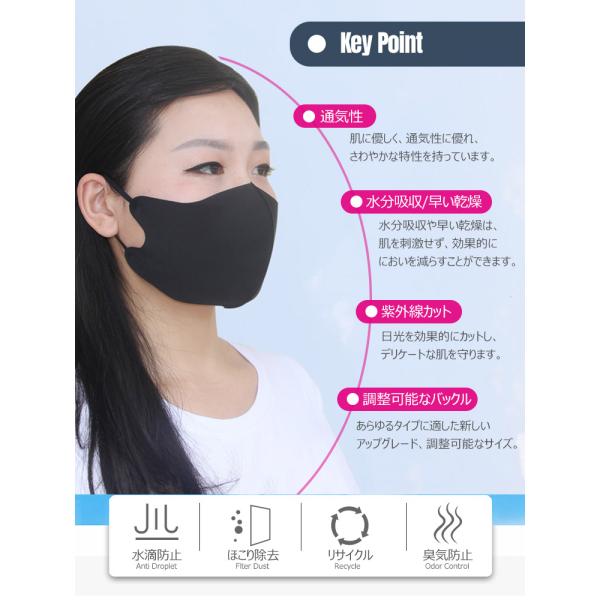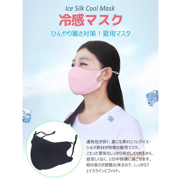 通気性が良く、夏にも蒸れにくいアイス・シルク素材が特徴の夏用マスク。