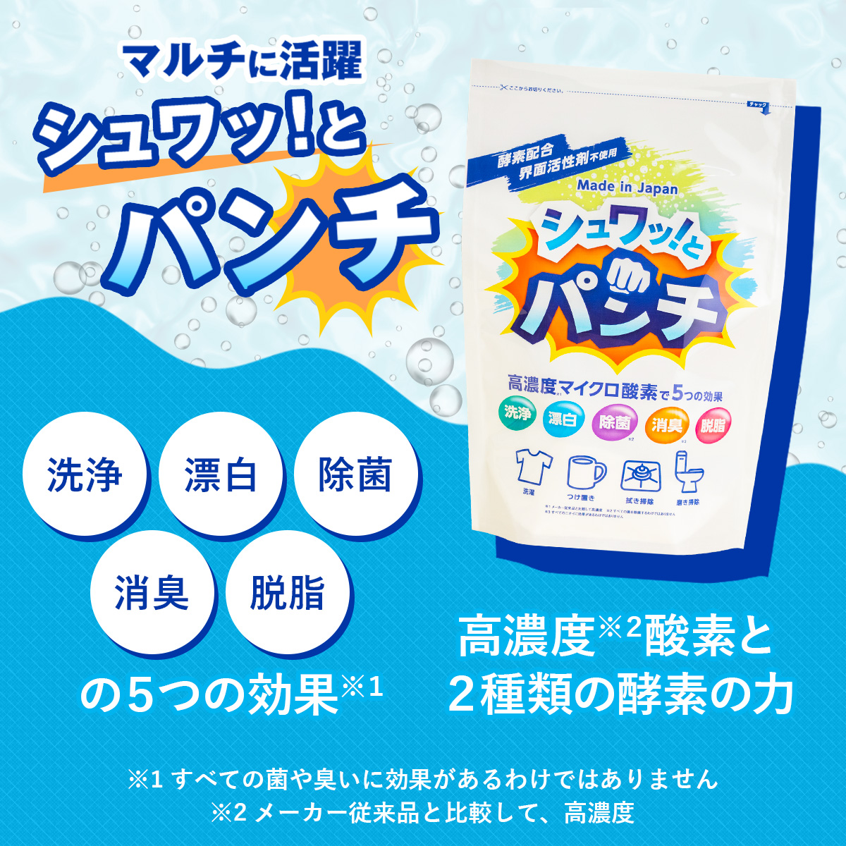 シュワッ!とパンチ 2パック(1kg×2) 洗浄 脱脂 除菌 漂白 消臭 油汚れ ヌメリ 風呂 水回り シュワっとパンチ シュワッとパンチ