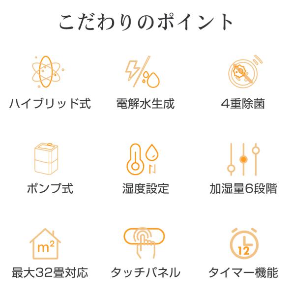 微酸性電解水で除菌率99% 6段階湿度調節 湿度調整機能