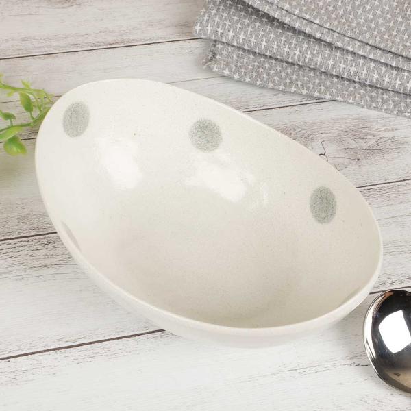 食器 カレー皿 サラダボウル シチュー スープ 煮物鉢/ ポルカドットホワイトオーバルボウル /パスタ 盛鉢 深皿 カフェ風 和食 洋食 家庭用 業務用 美濃焼