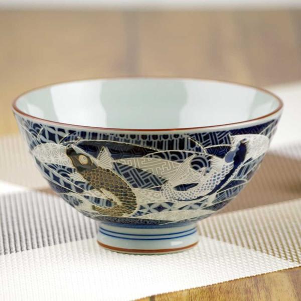 茶碗 飯碗/ 撥水 昇り鯉 茶碗 大平 /滝登り 出世 縁起 純和風