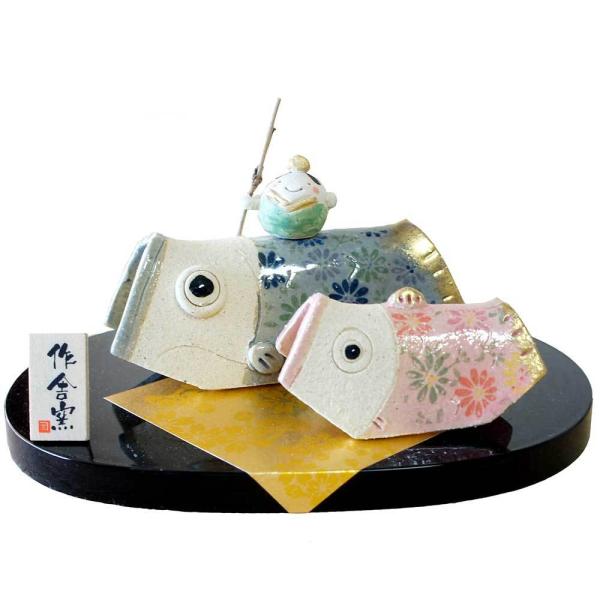 五月人形 コンパクト 陶器 小さい 鯉のぼり 人形師の手造り置物/ 豆武者と組鯉のぼり /こどもの日 端午の節句 初夏 お祝い 贈り物 プレゼント