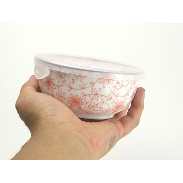 レンジパック 食器 蓋付き フタ付き 小鉢 ボウル/ ノンラップ小鉢 芽吹唐草(赤) /保存 鉢 うつわ 漬物 作り置き 常備菜 日本製 和食器 おしゃれ