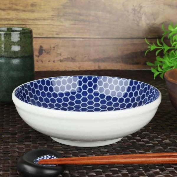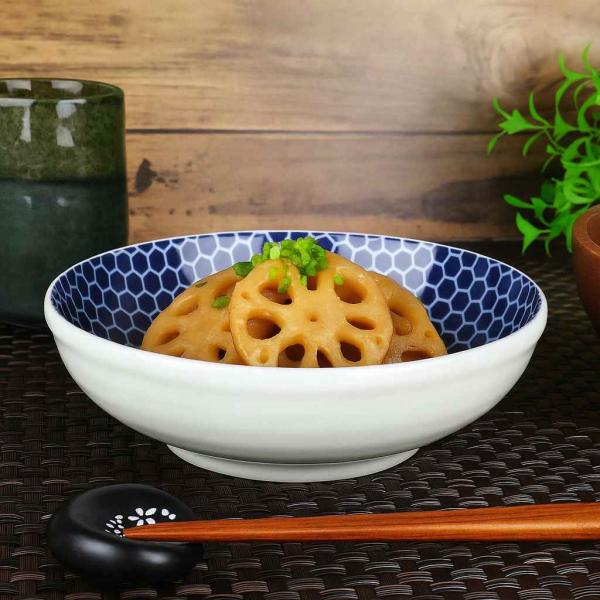 食器 中鉢 浅鉢/ 亀甲5.0浅鉢 /おかず鉢 副菜 和え物 サラダ 漬物 煮物鉢 取り鉢 おでん皿 業務用 家庭用 飲食店 和食 日本料理 藍 紺 ネイビー 古紋 和柄