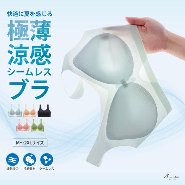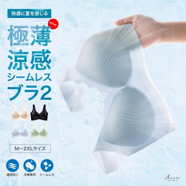 極薄涼感シームレスブラ2 ノンワイヤー ブラジャー ナイトブラ 夏用 夏 涼しい 冷感 接触冷感 クール 送料無料