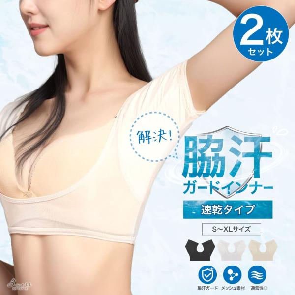 【お得な2枚セット】解決!脇汗ガードインナー 汗ジミ対策 脇汗 汗取りインナー レディース 汗染み 汗染防止 インナー ワキ汗 汗取りパット付 汗取パッド