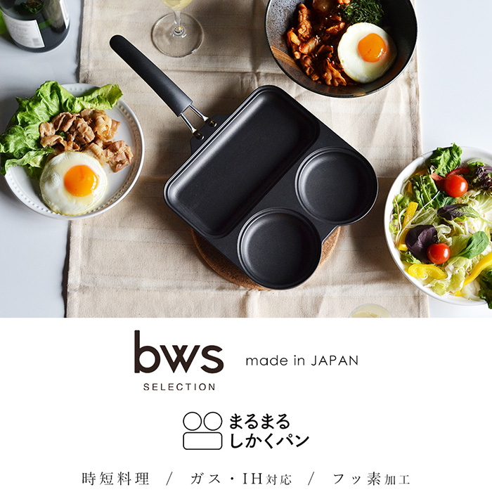 まるまるしかくパン フライパン 仕切り付き IH対応 日本製 ガス対応 フッ素加工 調理器具 目玉焼き パンケーキ 時短 ビーワーススタイル 燕三条bws SELECTION