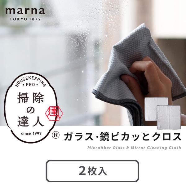 marna マーナ ガラス・鏡ピカッとクロス 2枚入 掃除の達人 マイクロファイバークロス 吸水 ふきん キッチンクロス 台拭き キッチン