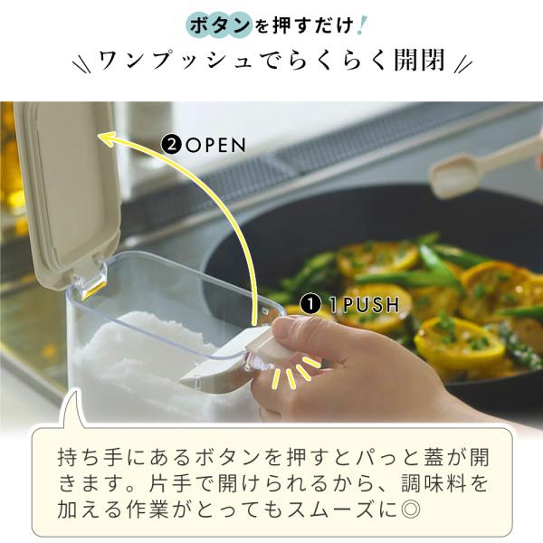 調味料ポット ノーマル 2個セット 調味料ケース 調味料入れ キャニスター 保存容器 容器 ケース 保存 調味料 塩 砂糖 密閉 スプーン付き すり切り板 ワンタッチ 370ml