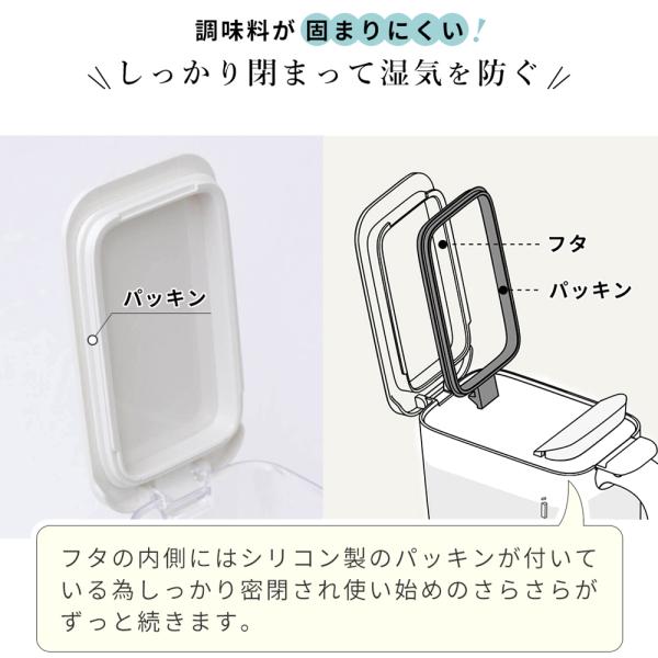 調味料がかたまりにくい、パッキンがついた調味料ポットの2個セットです。