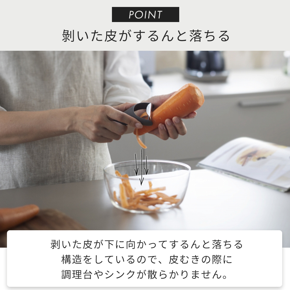 剥いた皮が張り付くことなく、下に向かってするんと落ちます。