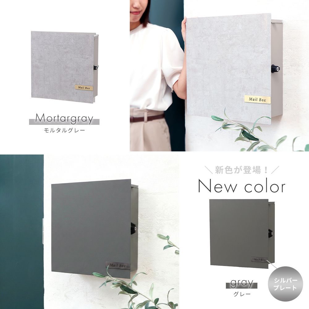 限りなく無駄を削ぎ落としたシンプルなデザインが魅力の壁掛けポスト。正面から投函口が見えないすっきりとした外観で、どんな玄関にも自然に馴染みます。マットな質感の本体にゴールドのステンレスプレートを組み合わせ、高級感と上品さを演出。プレートはマグネット式で、位置の変更や取り外しも可能です。A4サイズやレターパックなどのメール便に対応した投函口はフタ付きで、雨の侵入を防ぐ設計。取り出し口は大きく開き、郵便物の出し入れもスムーズです。内部には落下防止バーを備え、郵便物が多いときでも安心して取り出せます。本体にはガルバナイズド加工(亜鉛メッキ処理)を施したスチールを使用し、錆びにくく耐久性に優れています。鍵付き&ハンドル式ロックを採用し、防犯対策も抜群。