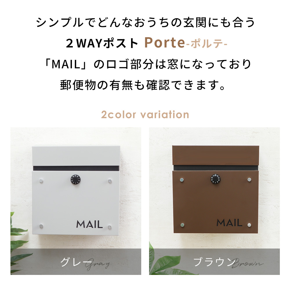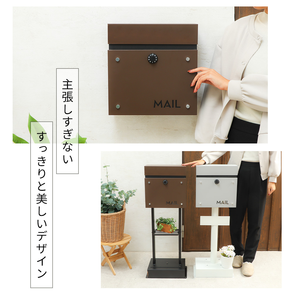 ポスト 壁掛け スタンド シンプル おしゃれ A4 メール便 北欧 郵便ポスト 鍵 ダイヤル錠 Porte ポルテ 玄関 郵便受け ウォールポスト ヤマソロ