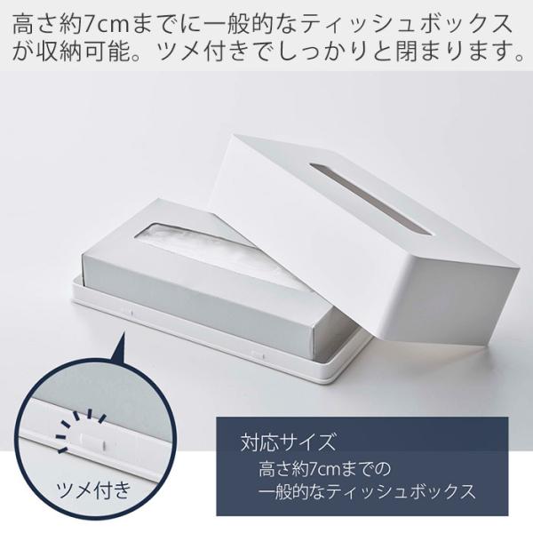 高さ約7cmまでに一般的なティッシュボックスが収納可能。ツメ(突起)が4か所ついているので、しっかりと閉まります。