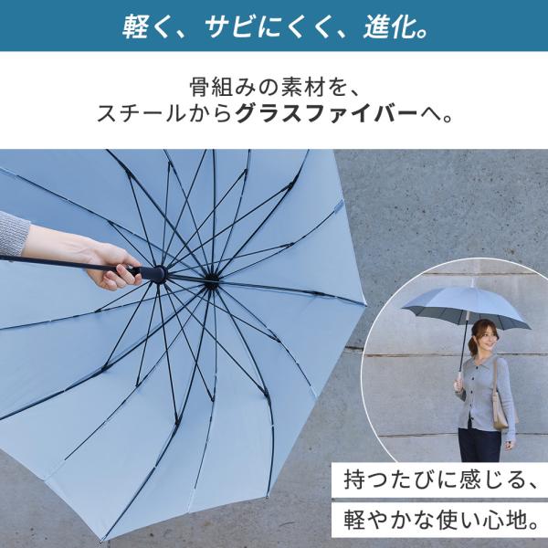 Shupatto アンブレラ(シュパット傘)は、ベルトがなく、とじるだけで一気にたためる新構造の傘。閉じる動きに連動して骨が回転し、生地をくるくると自動で巻き込むため、手でまとめたりベルトで留めたりする手間がありません。使いやすさはそのままに軽量化を実現し、持ち歩きの負担を軽減。さらにカラーバリエーションも一新し、より洗練されたラインアップに生まれ変わりました。スライダーを上げ下げするだけで開閉できるボタンレスロック方式を採用。ボタン操作不要でスムーズに開閉できます。また、中開き状態で固定できる乾燥用ストッパー機能付きで、使用後は立てたまま乾かすことが可能です。サイズは58cmと65cmの2種類。軽やかで持ちやすい58cmと、しっかり覆える安心サイズの65cmからお選びいただけます。UVカット率96.2%/UPF50+で晴雨兼用にも対応。折りたたみ不要・ベルト不要・ワンタッチ感覚でたためる、毎日使いたくなる機能的な一本です。