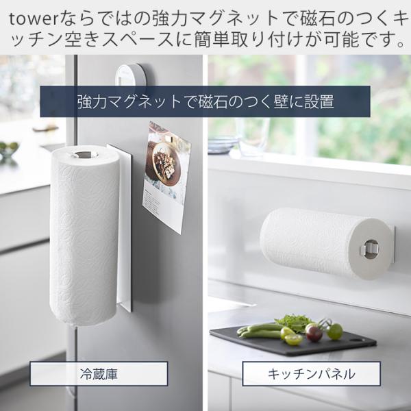 山崎実業 公式 タワー 片手でカットマグネットキッチンペーパーホルダー 縦タイプ L tower 片手 切れる 省スペース ペーパーホルダー 10270