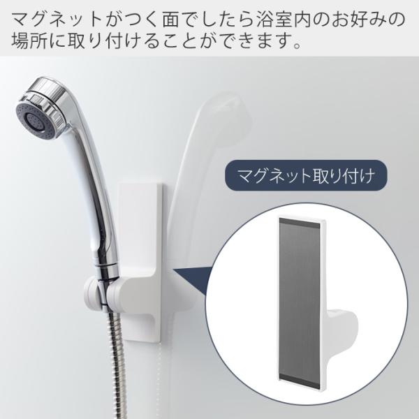 マグネットでお好みの位置に簡単取り付け!3段階の角度調節ができる便利なシャワーホルダーです。内側のストッパーで、水圧がかかってもズレにくく、使いやすい仕様です。