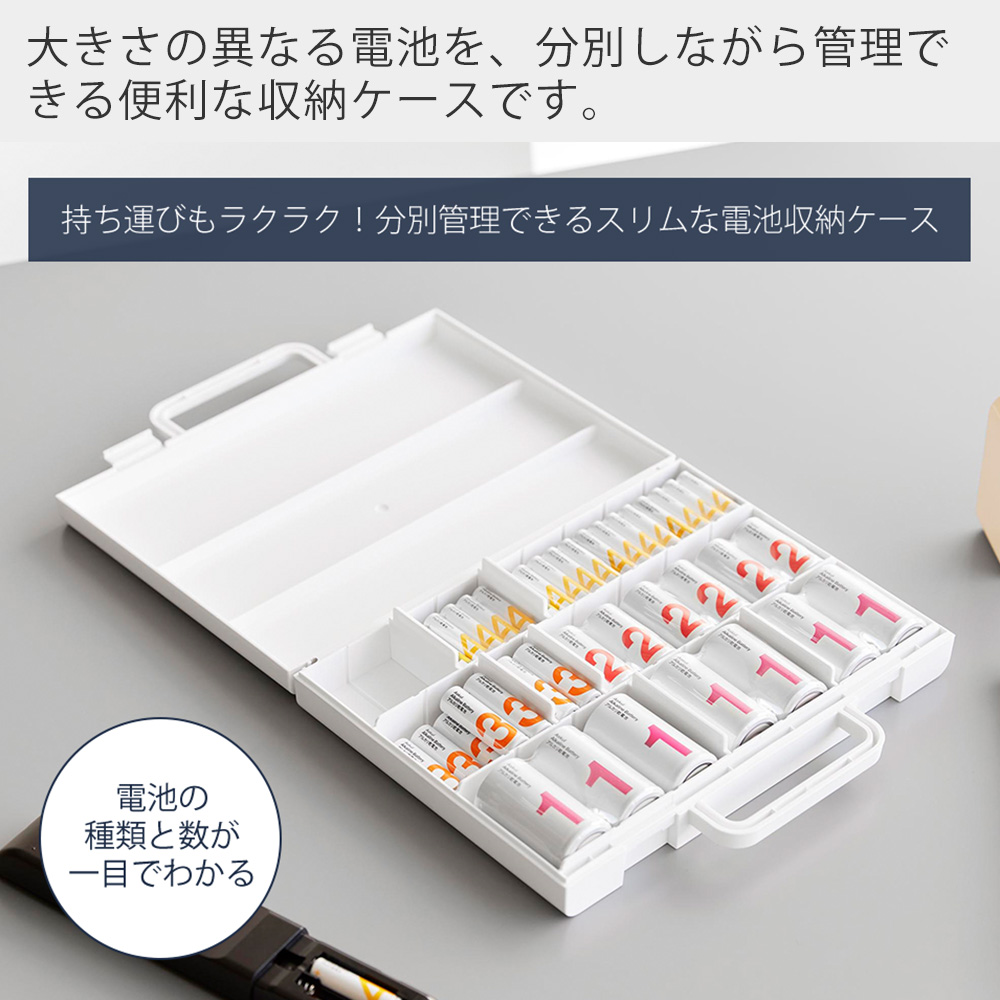 電池整理 仕分け 分別 専用ボックス ストック管理 スリム コンパクト ハンドル付き 小物整理 小型バッテリー 在庫管理 まとめて保管 仕切り付き スマート収納 持ち運び便利 持ち手付き 整理整頓 アイテム ボックス 日用品 工具不要 シンプルデザイン 備蓄 軽量 引き出し対応 デスク周り 形状 ホワイト ブラック タワー