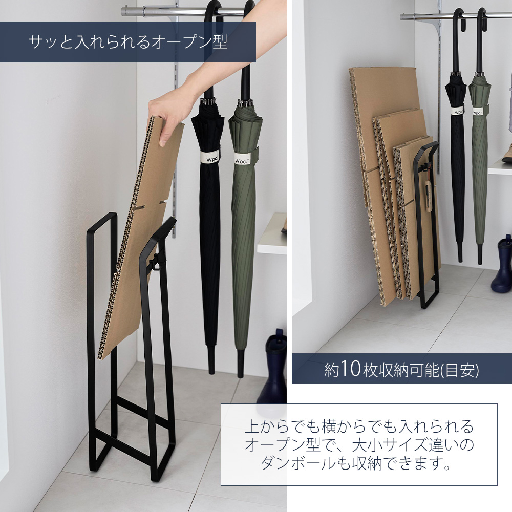 ダンボール入れ 段ボールラック ダンボール収納ワゴン 収納ラック 段ボール立て ストッカー ラック ワゴン 10枚 フック カッター コンパクト まとめる 整理 白 黒 ヤマザキ ヤマジツ 山実