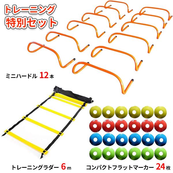 トレーニング特別セット(ミニハードル12個 コンパクトフラットマーカー24枚 トレーニングラダー6m) 多機能セット