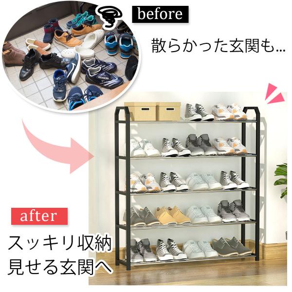 シューズラック 靴収納 靴箱 シューズボックス 下駄箱 薄型 靴入れ 靴箱 玄関収納 大容量 靴置き 組み立て式 5段