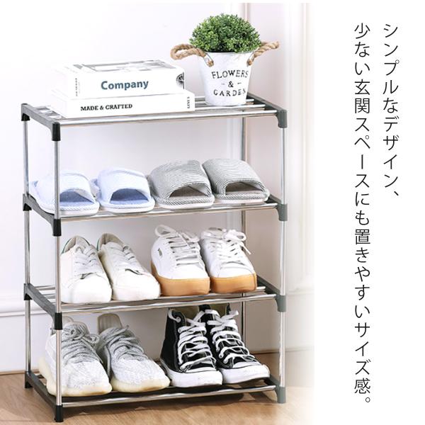 シューズラック コンパクト 靴収納 靴箱 シューズボックス 下駄箱 薄型 靴入れ 靴箱 玄関収納 大容量 靴置き 組み立て式 4段
