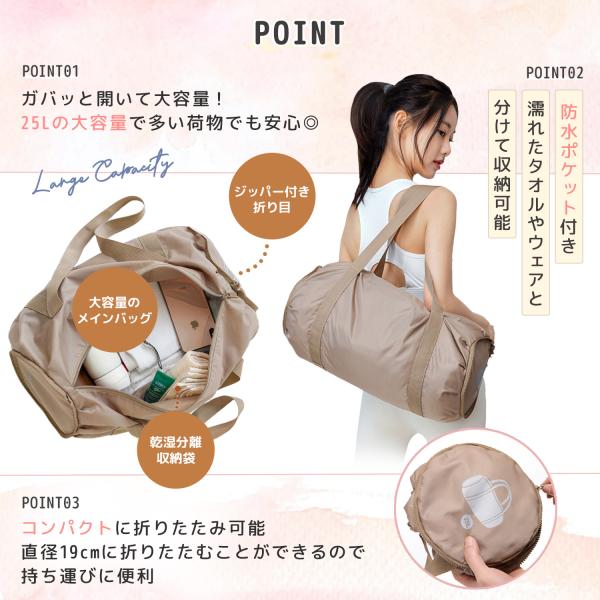 折りたたみ ダッフルバッグ ボストンバッグ トラベルバッグ 25L 軽量 大容量 撥水素材 サブバッグ 防水ポケット付 /メール便[ネコポス]発送