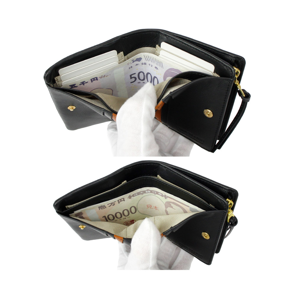 スナップボタン開閉;カードポケット×8、札入れ(仕切り有、カードポケット×6付)