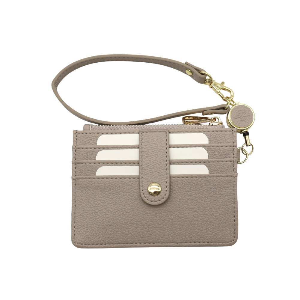リールコードを付けた最新モデルは、バッグの持ち手に通すことで、付けたままICカードがタッチ可能。改札やちょっとしたお買い物時もスムーズです。