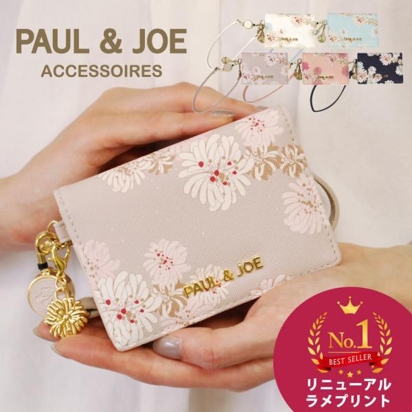 ポールアンドジョー パスケース リール付き PAUL&JOE 定期入れ 二つ折り レディース 名刺入れ 2面 クリザンテーム・ラメプリント pja-w974