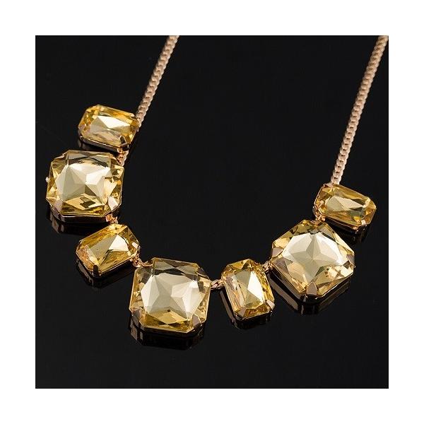 ネックレス カラービジュー スクエアラインストーン (ゴールド)