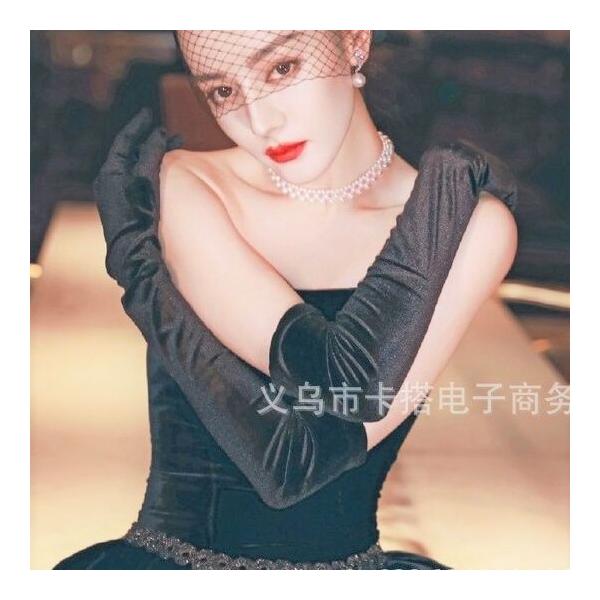 長さが肘上のフォーマルなベルベットのストレッチロンググローブ