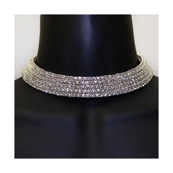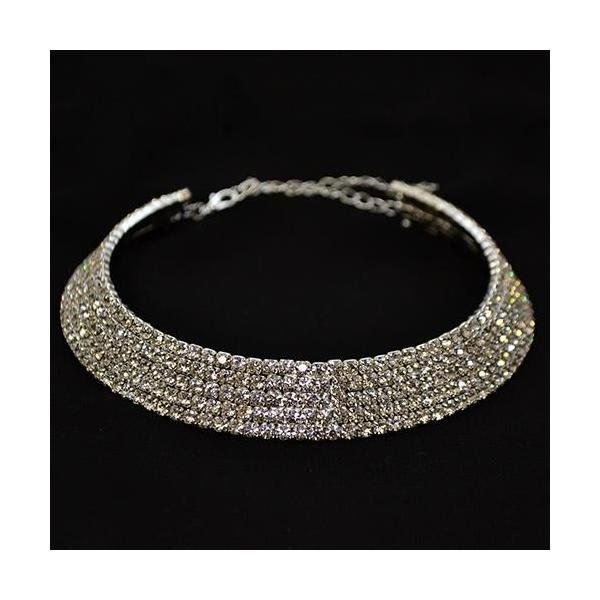 ラインストーン5連オメガチョーカー+ ピアスセット