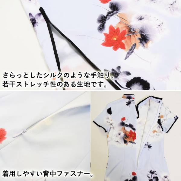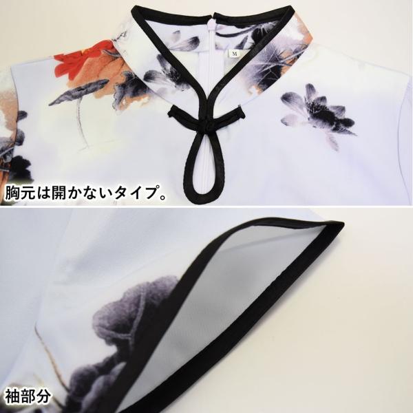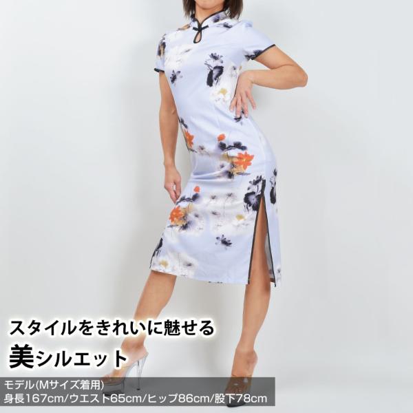 チャイナドレス ロングドレス ワンピース チャイナ服 ミルキーカラー 花柄 制服 ユニフォーム ロング丈 伸縮素材 レディース 半袖 スリット RC86284