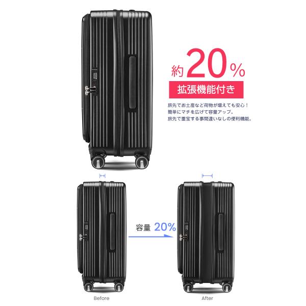 スーツケース Mサイズ フロントオープン 拡張機能 キャリーケース 24インチ 多機能 静音 軽量 大容量 【LH004-M】