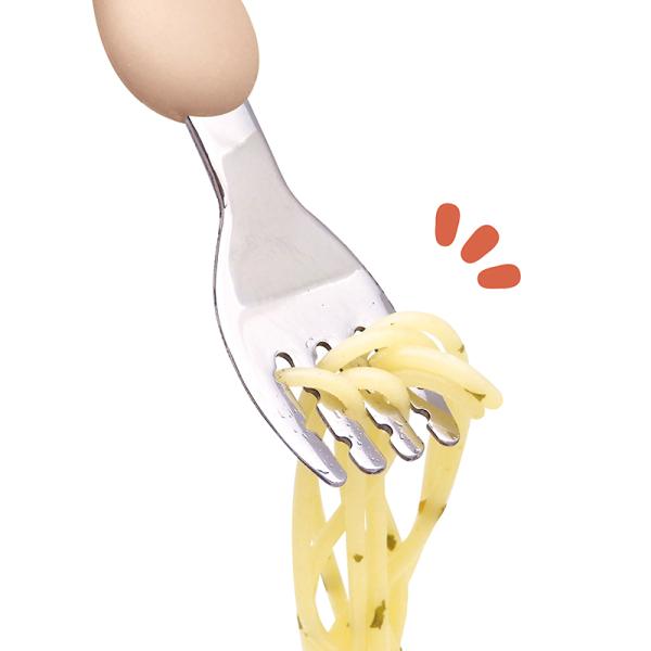 食べにくい麺類もしっかりキャッチし、こぼさずじょうずに食べられます。