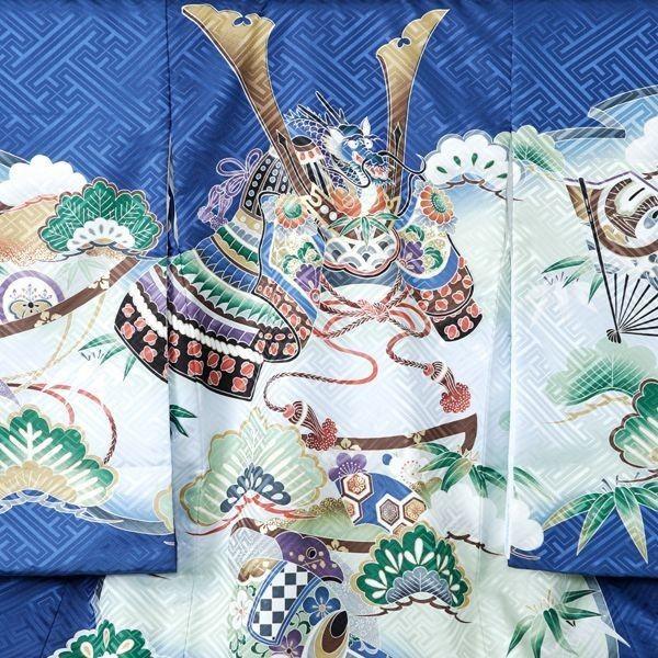 5歳男の子 兜柄の七五三着物レンタルフルセット(グリーン系 )|男の子(五歳) 5-664