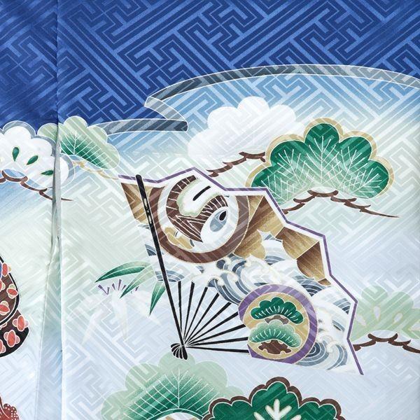 ■色/柄 紺青地 さや地紋 兜 扇 松