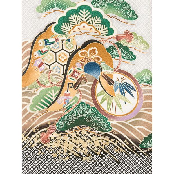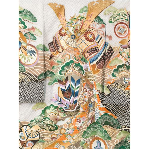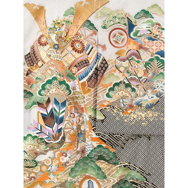お宮参り 赤ちゃん着物 グレー地に黒絞り調 兜柄