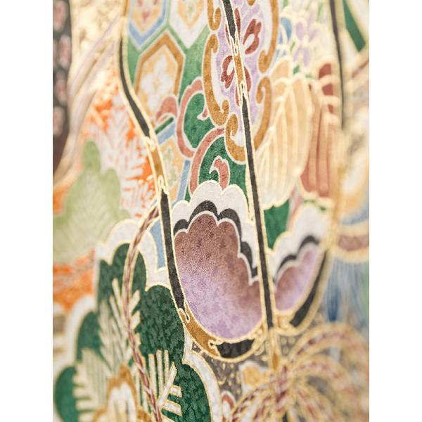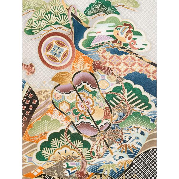 ■色/柄 グレー地に黒絞り調 兜 矢羽根 束ね熨斗