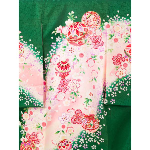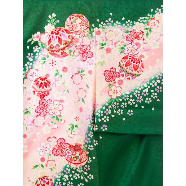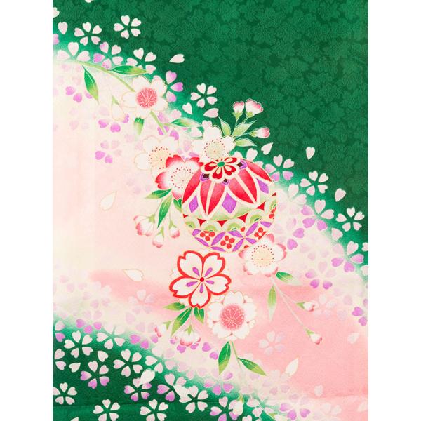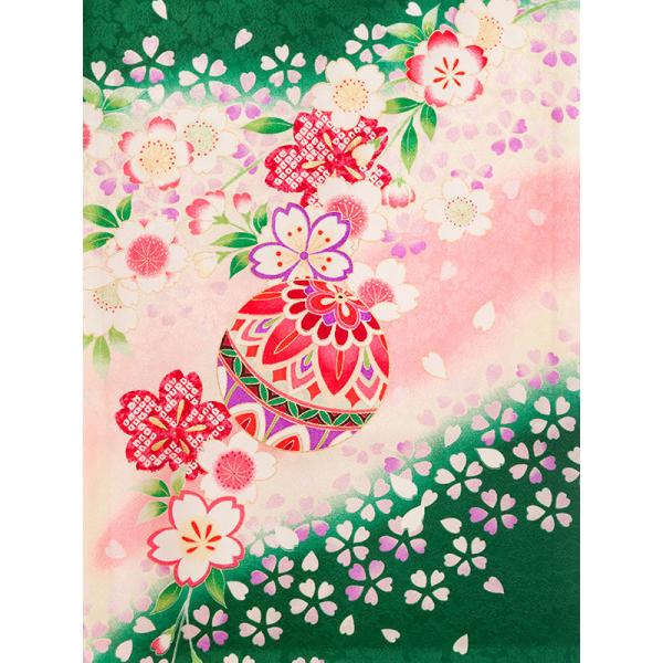 ■色/柄 グリーンぼかし 桜地紋 鞠に桜