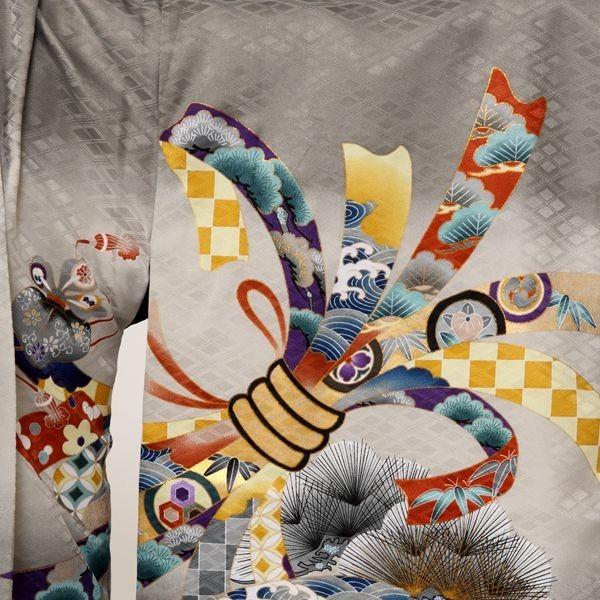 シックなグレー地に華やかな金襴の袴を合わせて!