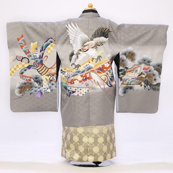 七五三5歳男の子 シックなグレー地に華やかな金襴の袴を合わせて