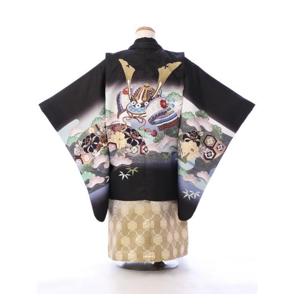 5歳男の子 兜柄の七五三着物レンタルフルセット(グリーン系 )|男の子(五歳) 5-664