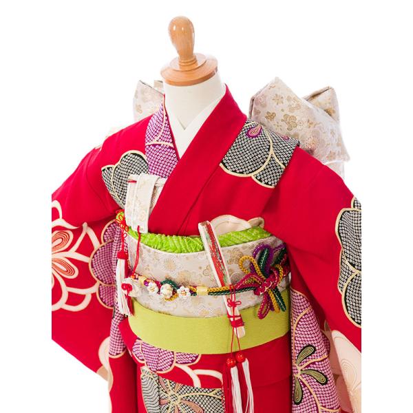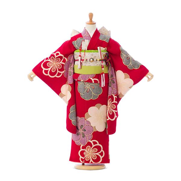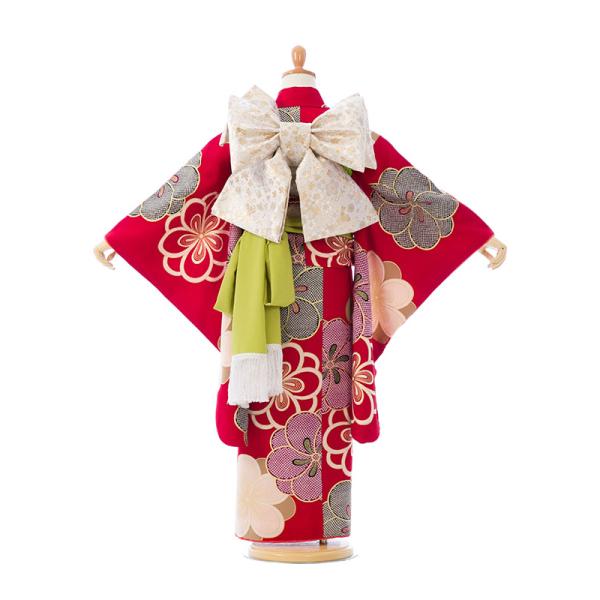 訳あり七五三 着物 5歳 7歳 フルセット レンタル 小さめ7歳 女の子 送料無料 簡単な着付け方マニュアル付 紅一点 正絹 古典柄 レトロ HAP5001