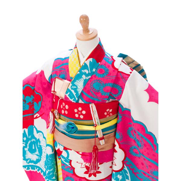 着物:ピンク×赤 雲と松 【モダンアンテナ】