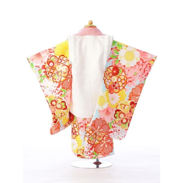 753 着物 3歳 七五三 3歳 753 着物| E-H-342 ブランド 式部浪漫 被布:白 着物:水色 七五三 被布 七五三 髪飾り 着せ方 モダンアンテナ レトロ モダン