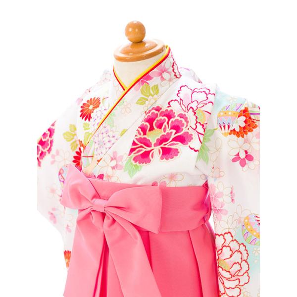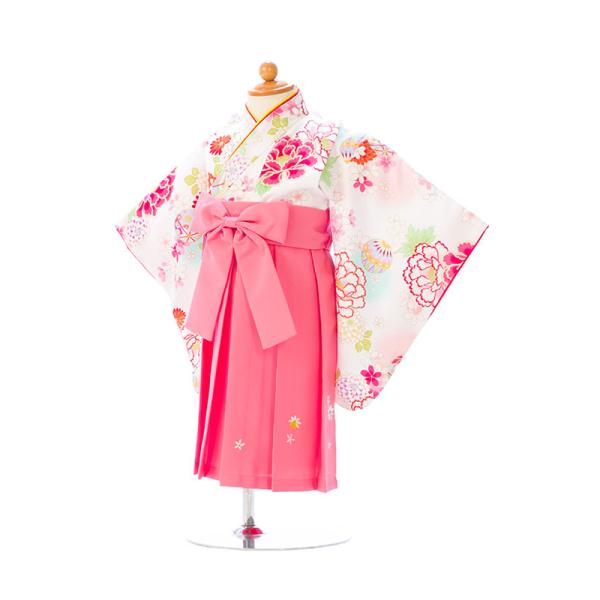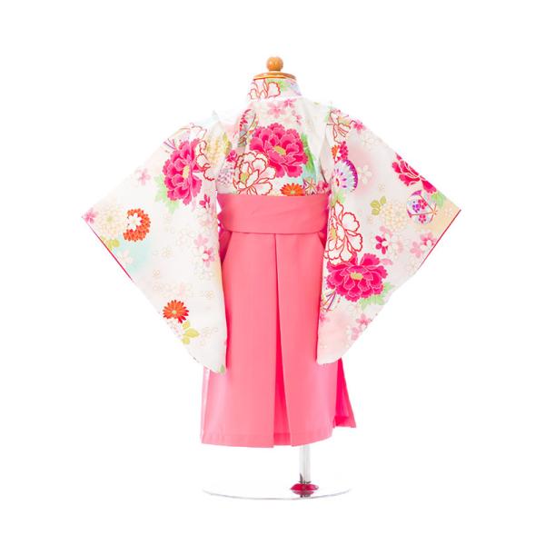 着物袴:白着物 ピンク袴 花